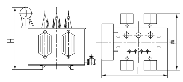 無(wú)儲(chǔ)油柜,箱蓋裝有QYW型變壓器保護(hù)裝置(氣體施放,壓力保護(hù)和溫度控制集一體的多功能保